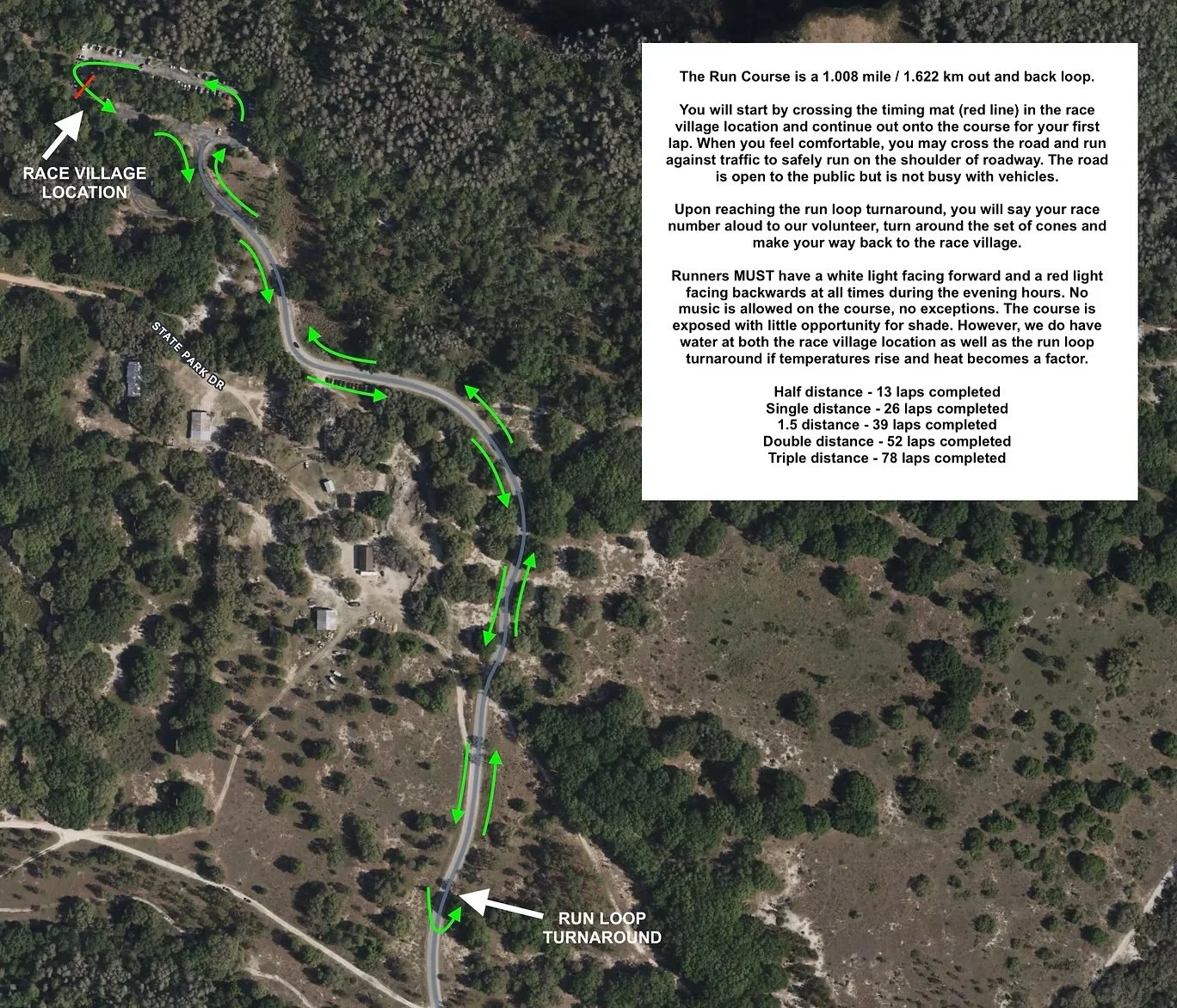 The courses are inside a state park and are well marked / manned by volunteers during the event. Try it before you bash it - we guarantee you’ll find the shorter loops helpful and more enjoyable during your event.