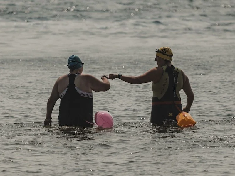 You will swim a 0.25 mile loop and then exit the water after each completed loop. Timers will be sitting at a table on the shore and it is important you exit the water, follow the loop around the timing table and communicate your race number with our volunteer swim timers. The swim course is open from 7:00am - 6:00pm Friday and 7:00am - 10:00am on Saturday.